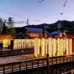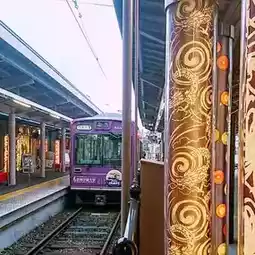 The path leads to Nakanoshima Park and the gentle sound of the Randen Train passing by. The combination of the glowing pillars, the distant train lights, and the quiet evening atmosphere was incredibly peaceful. I found a bench and just sat for a while, watching other solitary travelers and couples pass through the illuminated lane, all of us sharing a quiet moment of beauty.