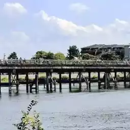 This bridge spans the Oi River (also known as the Hozu River) and offers a stunning backdrop of the Arashiyama mountains.