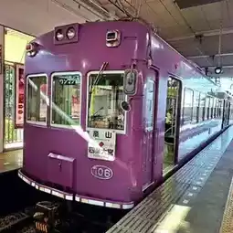 Take the bright purple Renden train from Omiya to Arashiyama Station, then walk a short distance to Togetsukyo Bridge.