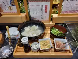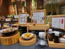 The menu is quite extensive, ranging from freshly fried omelets, fragrant bacon, and refreshing salads to a variety of local Kyoto dishes such as miso soup, pickles, and side dishes. The ochazuke (rice with tea) and handmade tofu, made with local Kyoto rice, are particularly recommended; their delicate texture and simple yet unforgettable flavor make for a memorable experience. For dessert, small cakes and fresh fruit paired with freshly brewed coffee provide a perfect ending to this morning's feast.