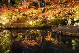 •✨ Nighttime Light Show: The nighttime visit is the highlight of Kinkaku-ji Temple's autumn season. The centerpiece is undoubtedly the "Shiun Garden" illuminated at night. The brilliantly lit autumn leaves reflect on the garden's water surface, creating a dreamlike scene. Experience the ethereal beauty of the garden under the interplay of light and shadow, distinct from its daytime charm.