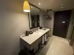 The bathroom only has a shower room, but it does have a rain shower.