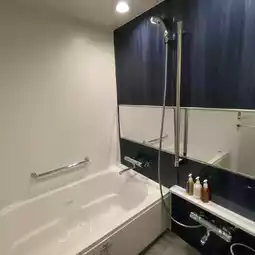 The toilet and bathroom are also designed with a sophisticated beauty and modern design, with white and blue as the main colors ✨