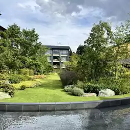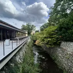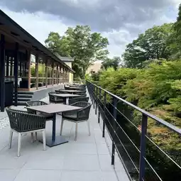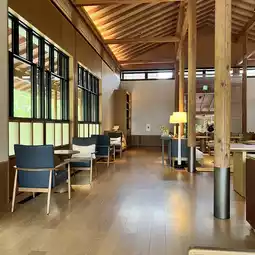 The hotel has a warm wooden interior, typical of Kyoto, and a beautiful garden😊