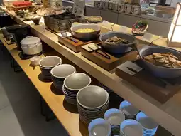 There is a sweets buffet with mainly Japanese sweets, and the breakfast has a delicious twist, allowing you to have sandwiches with warabi mochi and bean paste.