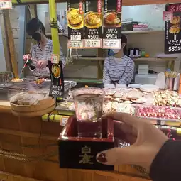 December's Brocade Market is not crowded, quite comfortable, we arrived at about 10 o'clock, stayed for 30 minutes, casually strolled, to eat seaweed and a cup of sake ~ because we want to eat kobe beef for lunch🤭🤭