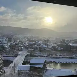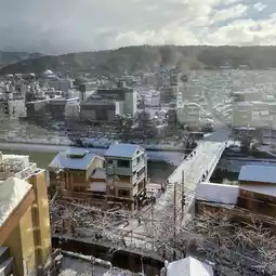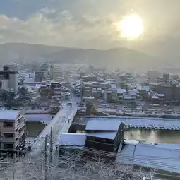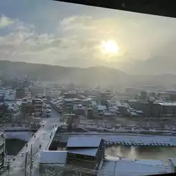 After a night of heavy snow and wind, we finally waited for the sunrise and welcomed the sun. The wind and snow died down under the sunshine, and it was so beautiful to see the streets of Kyoto covered with snow.