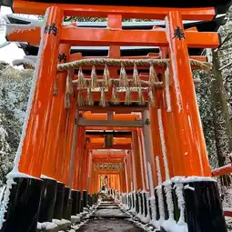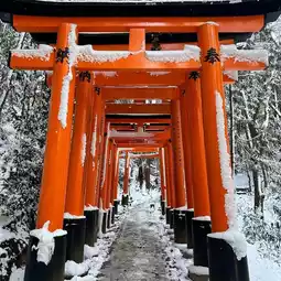 Kyoto is beautiful but Kyoto in the snow is just truly magical! if you want an amazing experience while in this beautiful ancient city you should check out Fushimi Inari Taisha; it is a beautiful mountain walk with thousands of traditional Buddhist gates, you can also find monkeys roaming freely and amazing traditional Japanese gifts and souvenirs nearby. If you visit Japan, this should be on the top of your list! #kyoto #japan #newyearadventure #fushimiinarishine #thousandgates #peace #winter #magical #snowy