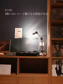 📌21:00-There's a room on the 4th floor where you can listen to records, so put in a record you like and relax for the night🌙