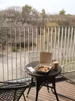 Choose your breakfast at the restaurant (a wide variety of side dishes!) → Take it back to your room and enjoy it on the balcony.
