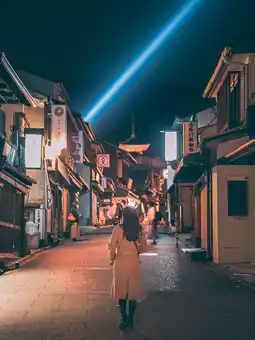 Walk along the stone-paved road leading to Kiyomizu-dera Temple, browsing the variety stores and souvenirs