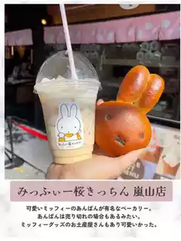 A cute bakery with Miffy. There is also an eat-in corner. The various types of bread and Japanese Miffy goods that are typical of Kyoto were cute!