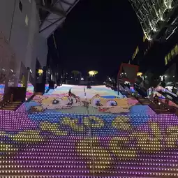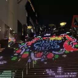 The 171-step staircase with a height difference of 30m is lit up with LED lights, and the changing lights are a spectacular sight.