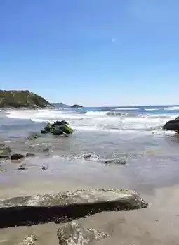 The beach here is very narrow, with coarse and distinct sand, mixed with coral fragments!