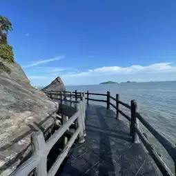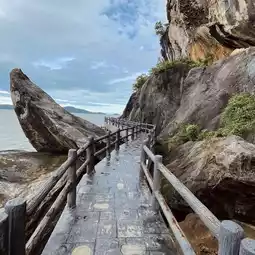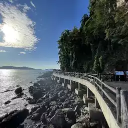 There is a long seaside walkway along the mountain called