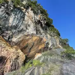 A section of the cliff has different colors of rock layers. There are traces of rocks from 2 eras: Cambrian red sandstone (approximately 541-485 million years old) and Ordovician limestone (approximately 485-444 million years old) which are more than 400 years apart. The traces of rocks from both eras are caused by the faults of the earth's crust that are clear and hard to see. It is as if you can step across time from the Cambrian to the Ordovician era just by stepping through, which is the origin of the name. Time Bridge or Time Zone