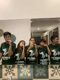 Seaesta Komodo Hostel is a hostel located in the center of the island, not far from the airport. There are many types of rooms to choose from, but the room we chose was a bunk bed dormitory with 8 beds and a shared bathroom. Some people may think that the shared bathroom will be dirty. I have to say that it's not. The accommodation is very well maintained, cleaned very often, and has complete facilities. The accommodation on the rooftop has a swimming pool, bar, pool table, and chill-out area. Downstairs, there is a ping pong table and a fitness center.
