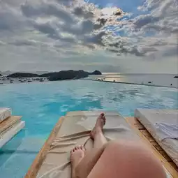 Breathtaking sunset views from the bar and pool area. They often have live music for you to listen to when watching the sunset.