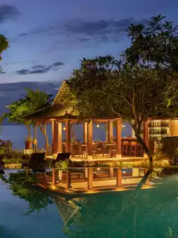 Dive into relaxation with direct beach access, perfect for sunset gazing, and embrace the European charm scattered throughout the resort. 🍹 The stunning pool with a swim-up bar offers ocean views that will steal your breath away, while the Manggarai Villa's indoor/outdoor bathroom invites starlit baths and ultimate privacy.