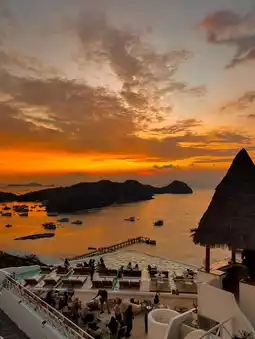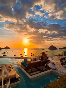 The Loccal Collection Hotel in Labuan Bajo offers an unparalleled sunset experience. Perched on a cliff, the hotel’s infinity pool and rooftop provide stunning panoramic views of the sun setting over the ocean, painting the sky in vibrant hues. The serene ambiance, coupled with the sight of traditional phinisi boats dotting the horizon, creates a magical atmosphere. Whether you’re enjoying a drink at the bar or relaxing by the pool, the sunset here is a must-see. Highly recommended for a memorable and picturesque evening!