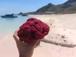 Next, we sailed to the ethereal Pink Beach (#pinkbeach)—a dreamlike shore shimmering with a soft blush hue, as if an angel had accidentally scattered rose dust upon it. Its color comes from tiny red organisms known as Foraminifera; when their coral shells mix with white sand and meet sunlight, they create this rare natural wonder—the pink miracle of the sea.
