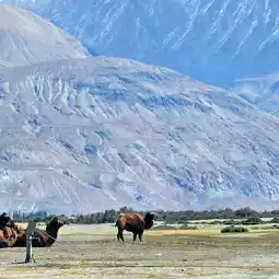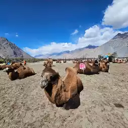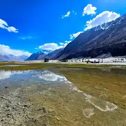 Nubra Valley is truly breathtaking, with its stunning mountain vistas, lush green villages, and sand dunes. The natural contrasts here are surreal, giving the impression of multiple worlds in one place. Snow-capped peaks, desert sands, and tranquil rivers coexist harmoniously.