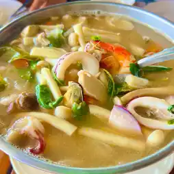 Enjoy the view of the Gulf of Thailand while eating fresh and delicious seafood at Rim Ao Ao Udom. The restaurant is located by the sea. It is an outdoor area where you can experience the sea up close. You can see fishing boats and the edge of the sea contrasting with the sky. The atmosphere is very good. Enjoy the view until you forget that the food is very delicious.