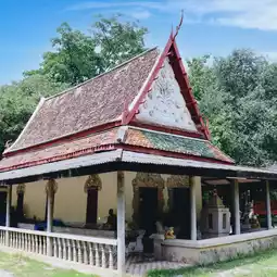 ððŋðŠ· It is an old temple since the reign of King Rama V. There is an old chapel on the coast that is over 100 years old. It is beautiful in a local style. The gable and the entrance arch are decorated with peacock stucco. The window frames are flower-patterned. Inside, there is an inscription of the construction of this church in 1906. There is a principal Buddha image in the Mara-Vijaya posture. There is a robe with a beautiful and rare Pikul flower pattern.