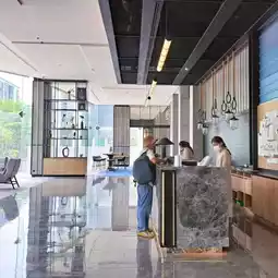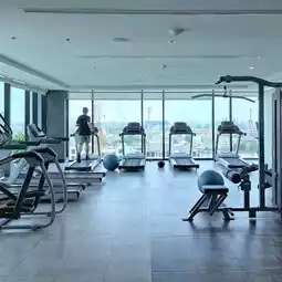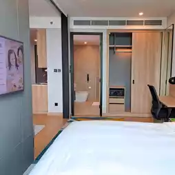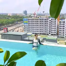 Industrial-style accommodation located on the main road, opposite Kasetsart University-Sriracha, convenient to travel, near tourist attractions ... with complete facilities such as a swimming pool, 24-hour fitness, massage room and onsen for a relaxing soak. There is also a Kid's Club for the little ones to have fun.