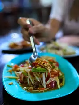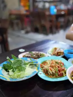 🥗 Larb Nai Noi Sriracha is a popular Isaan restaurant in Sriracha that is famous for its spicy taste and friendly prices. The restaurant's signature menu is Larb, which has a variety of dishes to choose from, including Larb Moo, Larb Kai, and Larb Neua, as well as other menus such as Som Tam, Grilled Chicken, and Tom Saep, which are all seasoned to taste delicious. In addition, the restaurant has a comfortable and friendly atmosphere, suitable for socializing with friends and family.