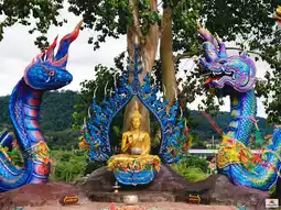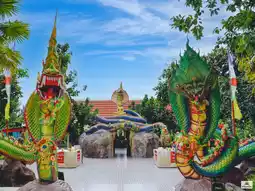It is one of the beautiful temples in Chonburi Province. It is located in a valley. The temple grounds are decorated in Japanese style. Inside Wat Hub Bon Wanaram, there is a large Naga statue as the center of the temple. It is the statue of Father Phaya Sri Suwanna Naga Thibodi and Mother Ya Sri Pathumma Naga Devi.