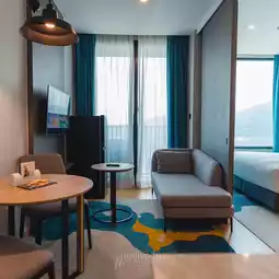 Today, May brings you to the 𝙃𝙤𝙡𝙞𝙙𝙖𝙮 𝙄𝙣𝙣 𝙎𝙪𝙞𝙩𝙚𝙨 𝙎𝙧𝙞𝙧𝙖𝙘𝙝𝙖 𝙇𝙖𝙚𝙢𝙘𝙝𝙖𝙗𝙖𝙣𝙜. Today, May chose to stay in the 𝙊𝙣𝙚 𝘽𝙚𝙙𝙧𝙤𝙤𝙢 𝙎𝙪𝙞𝙩𝙚. This one-bedroom suite offers a spacious living room, bedroom, kitchen counter, appliances, and a balcony.