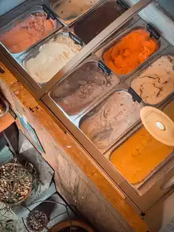 ☕️🍨 A cafe with a full range of coffee, homemade ice cream, and a huge menu. They even make their own sausages. The staff at the cafe are lovely and friendly, chatting with us and showing us pictures of each dish. I'll definitely have to try them out next time.