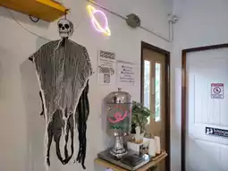 Soft Bingsu shop is located opposite D Park Condo near Sriracha Tiger Zoo. From the outside, it looks like a small, minimalistic shop, but once you step inside, you'll find a dedicated dessert-making room and a cozy seating area for customers. The interior is decorated in a cute, minimalistic style. I visited during Halloween, so the shop was themed accordingly.