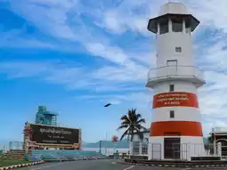 A prominent landmark located at the easternmost tip of Thailand, this striking white and red lighthouse stands out against the sky and sea. It has become a popular check-in spot for tourists, perfect for capturing memorable photos, especially in the evenings when the sun sets, casting a beautiful golden glow. The tranquil atmosphere is perfect for relaxation.