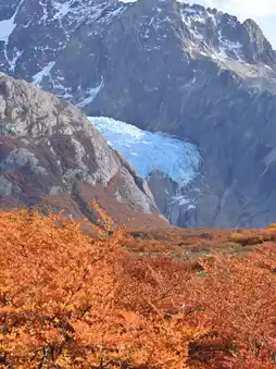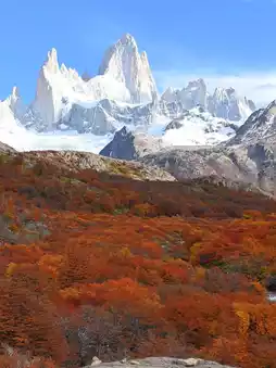 When I came, it was April, the end of summer, it was hot and about to get cold, so the weather was fluctuating. The trees were probably getting really old, so the leaves were really red. As for hiking, I recommend starting early in the morning. When the sun rises, when it's light, you should start walking right away because it takes about 10-12 hours to go up and down. You'll have time to sit and relax and eat snacks at the top of the mountain. Sit and enjoy the Fitz Roy peak to your heart's content.