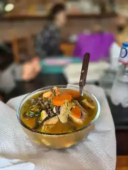 Overseas travel Argentina Los Antiguos' famous restaurant ⭐️El Rastro Del Choike⭐️ is a small, privately run restaurant. From the creaky door to the clean open kitchen, and the menu that changes every day with fresh ingredients, it's an impressive place. If you order wine after ordering food, they'll pour you a glass of wine, which is really generous. Dishes made with trout freshly caught from the lake or plants collected from the mountains are popular.