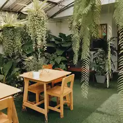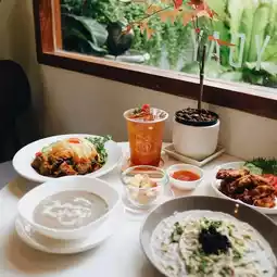 A secret home cafe in the Vibhavadi area. The atmosphere is good, with a small and large garden in front of the shop, making it very shady.