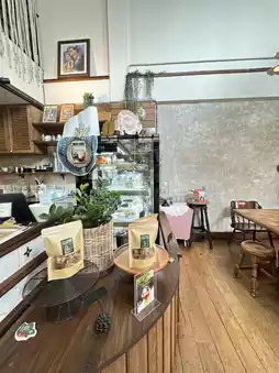 Inside and outside the shop, there are trees planted, making it look fresh.