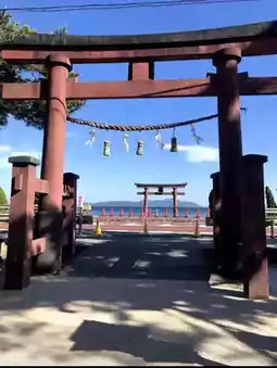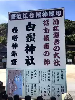 There is a large vermilion-lacquered torii gate in the middle of Lake Biwa, and the shrine is located across National Route 161. Widely known as 'Shirahige-san' or 'Myojin-san', it is the oldest shrine in Omi, also known as Omi's Itsukushima.