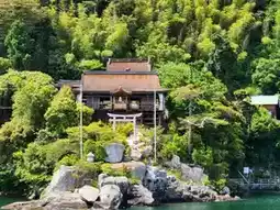 A scenic, sacred island in the north of Lake Biwa. Features ancient shrines and temples, including a shrine to Benzaiten. Accessible