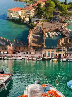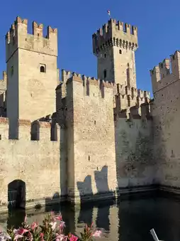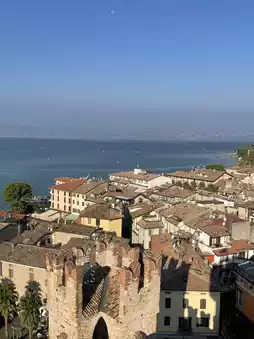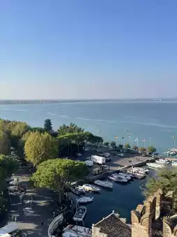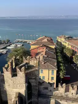 โข Climbing the main tower offers panoramic views of the peninsula and Lake Garda.