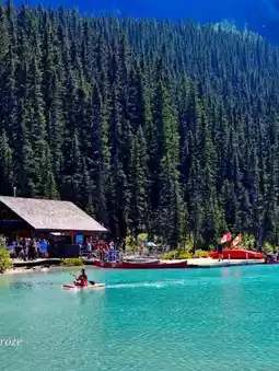 Famous for: Its turquoise-blue water, glacial backdrop, and access to hiking, skiing, and canoeing