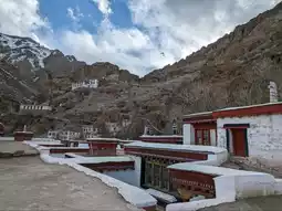 It's about 1.5 hours by rental motorbike from the city of Leh. The 17th century monastery is quietly located in a remote valley.