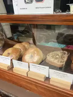 Wild Flowers Bakery is a freshly baked bread shop located at Kong Akong. Saturday-Sunday opens from 9:30 a.m. to 3:00 p.m. But I recommend going before noon because I went there when the shop was about to close and there were only a few pastries left. It is a bread shop with affordable prices and good taste. Good quality, for example, Shio Pan is only 35 baht. I personally like the Berry Cream Cheese Bagel the most. The taste is super good. No need to heat it up.