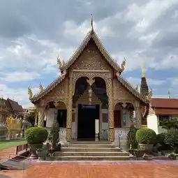 The golden chedi's striking contrast against the sky is truly breathtaking! ✨ Upon entering, you'll feel a sense of tranquility, awe, and a true Lanna cultural atmosphere.
