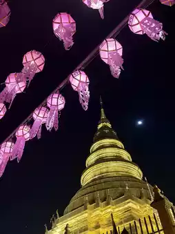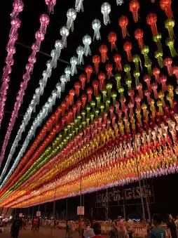 💞Recommended Reason: Pay homage to Phra That Hariphunchai, a sacred object of Lamphun, and hang lanterns for good fortune, according to Lanna beliefs. Take photos with the colorful lanterns. There's also a market where you can stroll through and buy a variety of food and souvenirs.