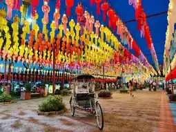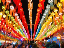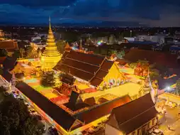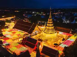 The ceremony of offering lanterns to the Phra That Hariphunchai as a Buddhist homage to the sacred relics of Hariphunchai for the year 2025, held at the courtyard of Phra Chao Lavo Viharn, Wat Phra That Hariphunchai Woramahaviharn.
