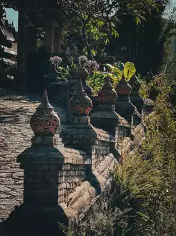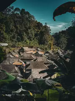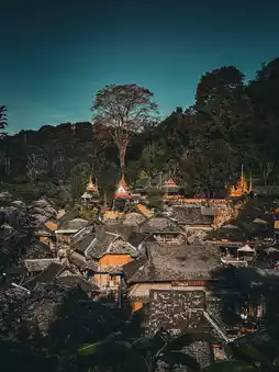 -Viewpoint next to the Buddhist temple: Golden light bathes the entire ancient village at sunset.