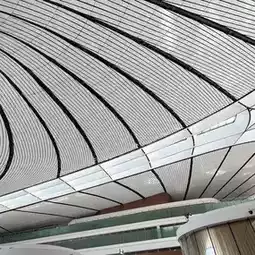 Walking around the terminal building, one cannot help but look at the curved organic shapes that form the ceiling. The collaboration between ADP Ingeniérie and Zaha Hadid Architects delivers an artistic atmosphere to the project.